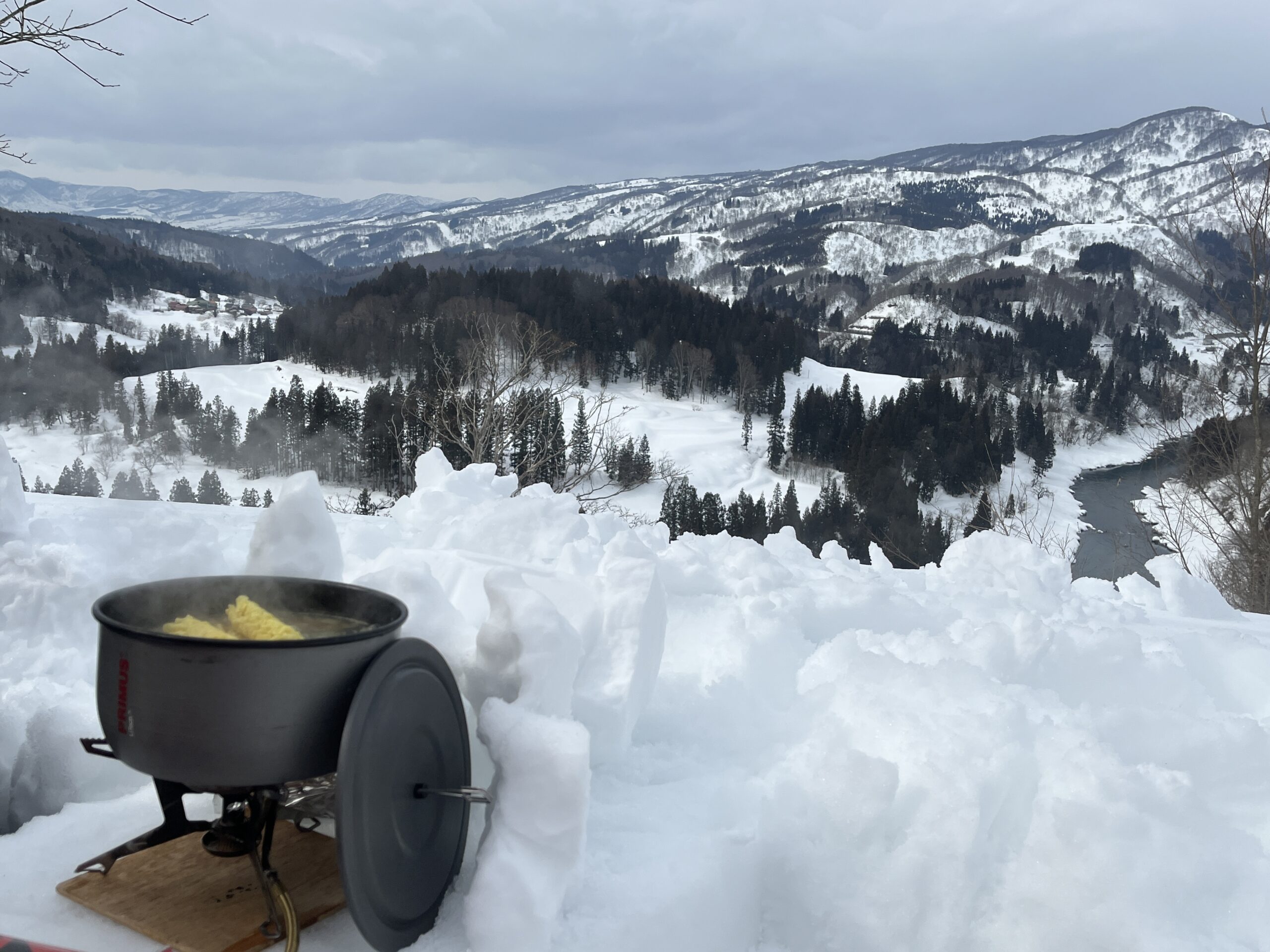 雪洞泊に備えるため、夕飯をおなかいっぱい食べました。